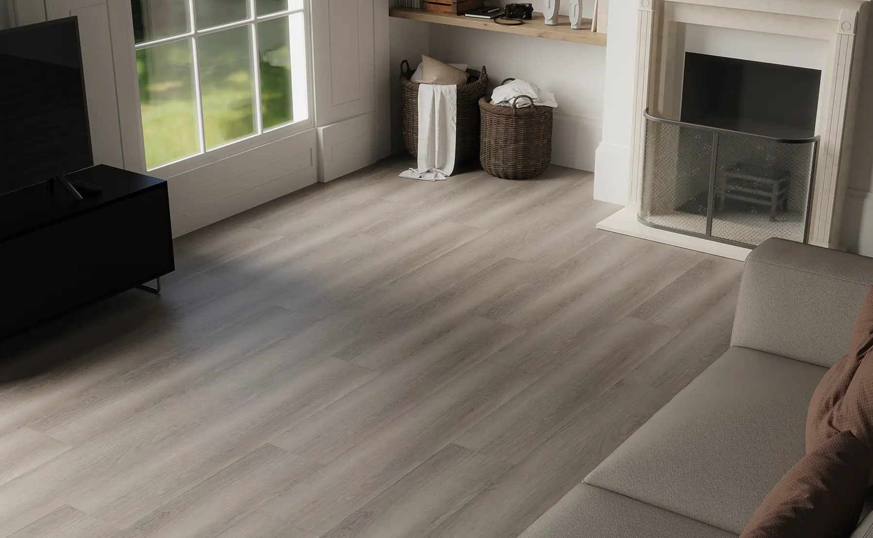 Композитна підлога з кам’яного пластику (Pure SPC) від Republic Floor виготовляється шляхом поєднання міцного пластикового композиту з добавками справжнього каменю для створення найміцнішої серцевини та найкращого водонепроникного матеріалу для підлоги. Для створення дизайнів високої чіткості додається верхній шар високоякісного вінілу, який витримує найсучасніші технології тиснення. Знизу додано третій шар надміцного високоякісного балансувального паперу для забезпечення захисту від вологи знизу. Ця тришарова конструкція гарантує, що підлогові матеріали SPC непроникні для вологи.